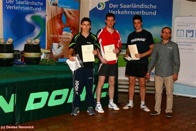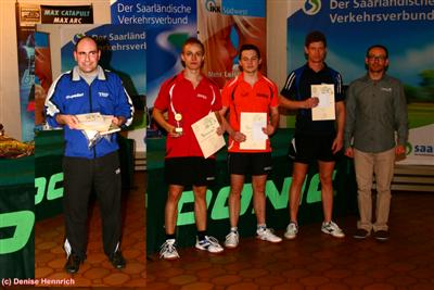 36.DKT Herren A - Marc Rode schlägt Stanislav HorshkovEin sehr starkes Teilnehmerfeld, indem sich nicht nur Stützen der besten saarländischen Mannschaften der Regional- und Oberliga befanden, sondern mit Dennis Müller, letztes Jahr noch in der zweiten Liga tätig und mit Stanislav und Marc gleich zwei Akteure aus dem vorderen Paarkreuz der zweiten Liga natürlich auch hochklassig wie schon lange nicht mehr besetzt.Stanislav lobte Luca Hahn, auf den er in der dritten Runde traf als wirklich talentiert und Luca hat das hoffentlich auch als Motivation ins Traing mitgenommen, denn so ein Lob spricht Stan nicht leichtfertig aus. Auch Rouven Niklas, trotz bekannter Spielstärke, mit der er sich immerhin gegen Andreas Greb durchzusetzen vermochte, war noch kein echter Prüfstein für ihn, auch wenn Rouven sich kontinuierlich verbessert hatte und auf einem ganz hervorragendem Weg ist, aber Stanislav hat einfach eine ganz außergewöhnliche Klasse. Im Halbfinale kam es zum letztjährigen Finale, auch ein Beleg der diesjährigen Stärke unserer höchsten Herrenkonkurrenz und wie im Jahr davor setze sich Stanislav wieder glatt gegen Chance Friend durch, der in den Runden davor mit Dirk Lion und David Lamma echte Prüfsteine vorgesetzt bekam und mit Bravour ins Halbfinale einzog. In der unteren Hälfte konnte ein gleichfalls weiter verbesserter Aaron Vallbracht Marc Rode einen Satz abnehmen, dann Michal Czarny, der gegen Eric Laubach und Matthias Knopf ins Viertefinale eingezogen war schlagen und traf dort auf Dennis Müller. Dennis hatte davor schon mit Siegen über den nach wie vor zu den richtig guten Routinier Oliver Thomas und dem starken Daniel Gissel zu überzeugen vermocht. Im Halbfinfale konnte er auch seine Klasse zeigen, aber die harten Killertopspins des B-Kader-Spielers zerstörten zu oft sein Spiel und so trafen die beiden dominantesten Spieler im Endspiel aufeinander. Auch hier zeigte Marc vie |