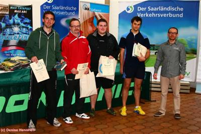 36.DKT Herren D - Emanuel Rupp wusste zu überzeugenDabei war es ein sehr schwerer Auftakt für Emanuel, denn gleich in der ersten Hauptrunde musste er gegen Michael Münzmay über fünf Sätze gehen, wobei keiner dieser Sätze mit mehr als zwei Punkten Unterschied endete.Auch danach ließ er in jeder Runde bis zum Finale einen Satz liegen und kam über den starken Elmer Daniel Schäfer ins Endspiel. Seinem Finalgegner Markus Klein ging es ähnlich. Auch er hatte mit dem Dudweilerer Markus Scherer seine Liebe Müh und Not und musste im nachfolgenden Viertelfinale gegen Carsten Paquet nochmals über fünf Sätze, um das Halbfinale zu erreichen. Dort gewann er überraschend glatt gegen Roman Pistorius, der auf seinem Weg ins Halbfinale Marco Schelb in fünf Sätzen und dann auch sehr deutlich Sascha Traufenberger bewzang. Markus hatte einen sehr guten Eindruck hinterlassen und wie Emanuel auch Steherqualitäten bewiesen, das Finale war letztlich aber eine klare Sache für Emanuel, der mit den Qualitäten seines Gegners einfach sehr gut zurecht kam und seinerseits wirkungsvoll punktete. Ein gutes und starkes Teilnehmerfeld war es wieder einmal und auch wer nicht gewonnen hatte, hatte doch zumindest ein paar gute Spiele gemacht. Ein wirklich guter Auftakt für unseren so stark besetzten dritten Tag.