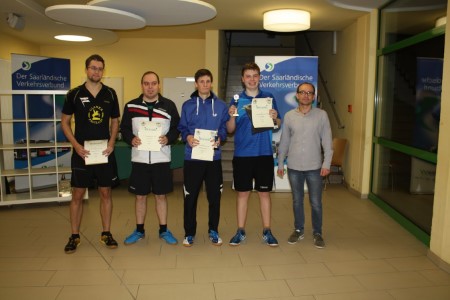Schüler Doppel B/C - Benjamin und Oliver Bier mit verdientem LohnBereits bei diesem Doppelwettbewerb zeigt sich das Dilemma in einigen Schüler- und Jugendkonkurrenzen. Die Spielstärkeunterschiede in den jeweiligen Altersklassen sind mitunter derart enorm, dass Spannung kaum aufkommen kann. Zu spielstark sind die Kaderspieler und zu unerfahren diejenigen, die lediglich 1-2 Mal pro Woche das reguläre Vereinstraining aufsuchen, um einen echten Wettbewerb zustandekommen zu lassen. Der Spielstärkeunterschied, gemessen in QTTR-Punkten zwischen dem stärksten Doppel und dem schwächsten Duo betrug hier 425 Punkte, da war für das ein oder andere Doppel nur "Dabeisein ist alles" als Motto drin.In der oberen Turnierhälfte dominierten Benjamin und Oliver Bier vom TTC Altenwald das Geschehen, sie mussten sich gegen Joe Zimmer und Marwin Rehmer (TTV Niederlinxweiler) nach verlorenem ersten Satz aber dreimal mit einem knappen 2-Punkte-Vorsprung die Finalteilnahme hart erkämpfen. Für Hendrik Remark (TTG Werbeln) und Luca Fery (TTC Hülzweiler) war das Erstrundspiel gegen die Niederlinxweilerer Kombination sicher eine Lehrstunde und schöne Erfahrung. Auch Julian Helfen/Elias Uhde (DJK Roden) sowie Leonie Bischoff/David Garcia Mai (TTV Rimlingen-Bachem) waren in ihren Erstrundespielen in der unteren Turnierhälfte ohne echte Chance, ihre Spiele siegreich zu gestalten, erspielten sich aber den ein oder anderen schönen Ball. Auch hier war das Halbfinale umkämpft, es setzten sich mit 3:1 Sätzen Albert Simon/Arman Aghababa (TTC WNL Losheim am See/TTC Hülzweiler) gegen die leicht favorisierten René Ackermann/David Seitzer (TTV Niederlinxweiler/DJK Heusweiler) durch. Im Finale allerdings, da liessen die Gebrüder Bier vom TTC Altenwald nichts anbrennen und siegten souverän und verdient. Die Siegerehrung wurde von Landrat Patrick Lauer durchgeführt. Platzierungen1. Benjamin Bier/Oliver Bier (TTC Altenwald)2. Albert Simon/Arman Aghababa (TTC WNL Losheim am See/TTC Hülzweiler) 3. Marvin Rehmer/ Joe Zimmer (TTV Niederlinxweiler) 3. René Ackermann/David Seitzer (TTV Niederlinxweiler/DJK Heusweiler) 5. Julian Helfen/Elias Uhde (DJK Saarlouis-Roden) 5. Leonie Bischoff/David Garcia Mai (TTV Rimlingen-Bachem) 5. Hendrik Remark/Luca Fery (TTG Werbeln/TTC Hülzweiler)