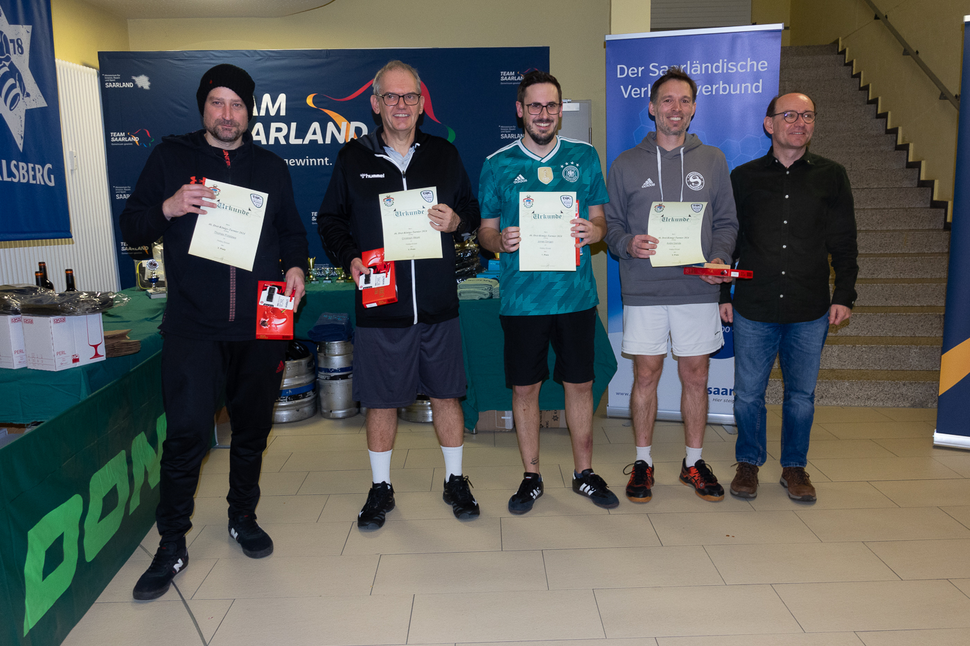 Jonas Gergen gelingt die TitelverteidigungWer einfach einmal im Urlaub an der dortigen Tischtennisplatte einen Schläger in die Hand nimmt und dort gegen alle anderen erfolgreich ist, wäre vermutlich dennoch entsetzt, wie hoch das Niveau bei unseren Hobbyspielern ist.Da können alle das Bällchen auf die andere Seite spielen und manch einer dürfte auch dem ein oder anderen aktiven Spieler das Leben schwer machen. Gut gespielt haben sie alle, da waren aber doch fünf, die sich noch davon abhoben. Unglücksrabe Peter Wolf erwischte die Gruppe mit dem Finalisten Andre Damde, dem er nur knapp in fünf Sätzen unterlag, spielte sich dann ins Viertelfinale, bevor er dort auf den starken Thomas Potstawa traf, der gegen ihn einen 1:2-Satzrückstand noch in einen Sieg drehen konnte. Die anderen beiden, überaus starken Akteure waren Jonas Gergen und Christoph Meyer.