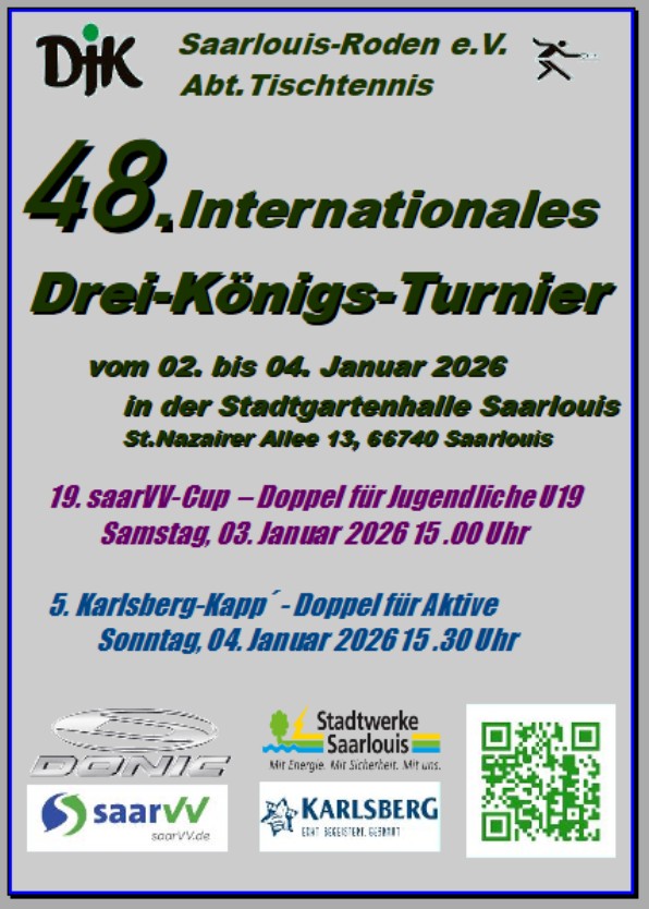 | TT Allgemein | Ankündigungen | Aus der DJK | Aus der Saison | Dreikönigsturnier |
