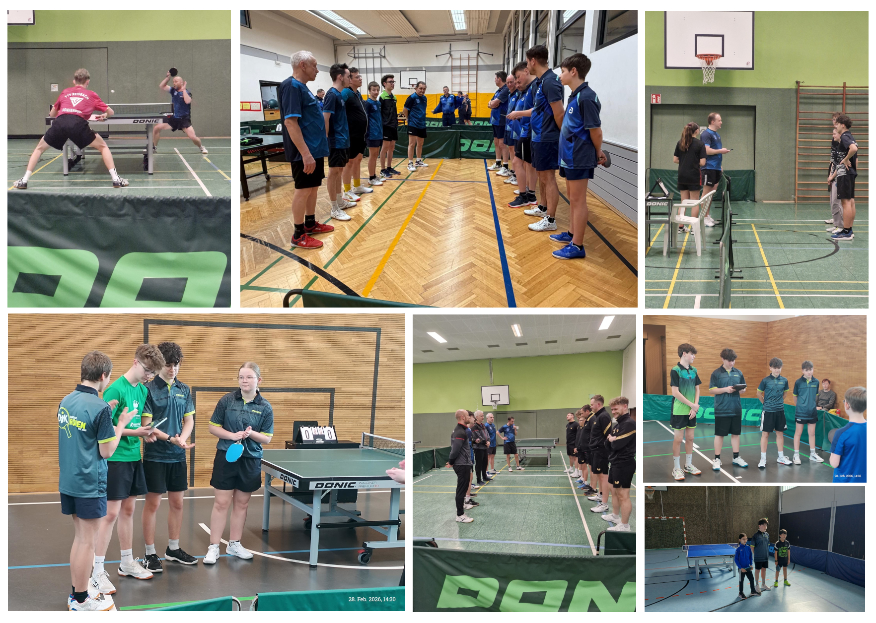 Saarlandliga: SG RB Westsaar - TTV Reisbach 8:8Bezirksliga: SG RB Westsaar II - TTF Besseringen II 9:5 Bezirksliga: TTC Ensdorf - SG RB Westsaar III 9:5 1. Bezirksklasse: TTSV Fraulautern II - SG RB Westsaar IV 9:0 Vierer-Team: SG RB Westsaar V - TTF Besseringen III 3:7 Bezirksklasse Senioren: TTC Wallerfangen II - DJK Roden 1:9 Saarlandliga: U19 - DJK Rastpfuhl 8:2 Landesliga: U15 - TuS Neunkirchen 10:0 Saarlandliga: TuS Bliesransbach - U13 7:3 Saarlandliga: SG RB Westsaar - TTV Reisbach 8:8 Krank, verletzt, Schicht, es war wahrlich kein leichter Spieltag für Sportkoordinator Jonah, den er an diesem Wochenende bewältigen musste. Das wir trotz vieler Ausfälle aufgrund großer Unterstützung doch mit allen Teams antreten konnten, dafür allen vielen Dank. Vielleicht war es auch diese Welle der Solidarität, die uns den nötigen Auftrieb gegen den Tabellendritten aus Reisbach gab, um uns hier einen hart erkämpften Punkt zu sichern. Insgesamt gingen sechs Spiele in den Entscheidungssatz, die alle knapp ausgingen, drei davon gingen jeweils an uns und an die spielstarken Gäste. Den ersten davon sicherten sich Timo und Siegmar, die uns damit nach den Doppeln knapp in Führung brachten. In der ersten Runde gewannen Boris, Timo und Matthias ihre Einzel, so dass wir knapp mit 5:4 vorne lagen. Danach brachten leider nur Stefan und wieder Matthias ihre Einzel durch, so dass wir mit Rückstand ins Schlussdoppel gingen, wo sich Jonah und Boris für die vorausgegangenen, knappen Niederlagen revanchieren vermochten und uns in einem heißen Match auf gutem Niveau mit 11:9 im Entscheidungssatz die Punkteteilung sicherten. Bezirksliga: SG RB Westsaar II - TTF Besseringen II 9:5 Natürlich litt auch die Zweitvertretung unter den Ausfällen. Kapitän Yannick, sonst im hinteren Paarkreuz, musste vorne aushelfen. Nach den Doppeln lagen wir knapp hinten, doch vorne hielten uns Martin und Yannick mit ausgeglichenen Ergebnissen stets im Spiel. Da in den Einzeln Daniel und Max je zweimal für uns punkteten und sich auch Nils und Fabio daran beteiligten, hatte alle unsere Spieler ihren Anteil an diesem tollen Sieg, Bezirksliga: TTC Ensdorf - SG RB Westsaar III 9:5 Die Dritte konnte das dann nicht mehr kompensieren. Dennoch hat sie sich teuer verkauft und hielt über weite Strecken mit. Durch eine Verletzung musste bei den Gästen Roman Wilhelm früh passen und dessen Spiele gingen an uns, Nachwuchsspieler Nero im Doppel mit Josef und in einem Einzel, das zweite verlor er nur knapp , erspielten sich unsere weiteren Punkte. 1. Bezirksklasse: TTSV Fraulautern II - SG RB Westsaar IV 9:0 Gegen den Tabellenführer war zwei Stammspielern nichts zu gewinnen. Michael koordinierte unser letztes Aufgebot bewundernswert, sympathisch mit guter Laune durch Pascal unterstützt. Jannis und Adi gaben ihren Einstand im Team, Ben und Thomas als Hobbyspieler schnupperten zum ersten Mal überhaupt Spielbetriebsluft. Vierer-Team: SG RB Westsaar V - TTF Besseringen III 3:7 Ersatzgeschwächt gingen wir in das Spiel gegen Besseringen. Vier der fünf anwesenden Spieler waren klar unter 18 Jahren, lediglich Kapitän Makar ragte heraus und half mit seiner besonnenen Art auch Kim zu ihrem Einzelerfolg und steuerte selbst zwei bei. Danke an Kim und Makar, stellvertretend für alle, die mitgeholfen haben, dass wir die zahlreichen Ausfälle halbwegs zu kompensieren vermochten. Es war wahrlich eine Energieleistung! Bezirksklasse Senioren: TTC Wallerfangen II - DJK Roden 1:9 Im Spitzenspiel des Spieltages gaben wir uns gegen den Tabellendritten keine Blöße. Ein Doppel zu Beginn ging verloren, das machte es etwas spannender. Sehr klare Siege danach mit dem Schlusspunkt von Kapitän Siegmar ließen zu keiner Zeit Zweifel aufkommen, wer dieses Spiel gewinnen würde. Saarlandliga: U19 - DJK Rastpfuhl 8:2 Gegen die DJK-Kameraden behaupteten wir uns erfolgreich. Wie knapp es zuging, verraten die Entscheidungssätze, alle vier konnten wir gewinnen und dadurch einen Sieg feiern, der sehr viel knapper war als es das Endergebnisse aufzeigt. Cheyenne aus einer Verletzung kommend, musste dieser noch Tribut zollen und verlor ihre beiden Einzel. Im Doppel mit Nero, der wie auch Jonas und Felix ungeschlagen blieb, trug sie dennoch ihren Teil zum Erfolg bei. Ein schöner, weil auch sehr enger Sieg, in einem Spiel, das über zwei Stunden ging und viele sehenswerte Ballwechsel hatte. Landesliga: U15 - TuS Neunkirchen 10:0 Die Schüler hatten in der gesamten Runde nur ein Spiel verloren, das Hinspiel in Neunkirchen, das dazu noch klar mit 8.2. Mit Spannung erwarteten wir das klare Spitzenspiel Erster gegen Dritter, bei einem Sieg hätten sich die Gäste mit einem Punkt an uns vorbei geschoben. Neunkirchen bot aber nur einen seiner Stammspieler auf, Damon und Giulio machten ihre ersten Spiele in der Runde. Wir gaben keinen Satz ab und sind noch immer vor dem letzten Spiel mit einem Punkt Vorsprung Spitzenreiter. Saarlandliga: TuS Bliesransbach - U13 7:3 Anna, Ben und Kapitän Max schlugen sich in Bliesransbach achtbar, gewannen jeweils eines ihrer drei Einzel, der Sieg ging auch in dieser Höhe verdient an den Gastgeber. Trotzdem sind die Verbesserungen in allen Bereichen unübersehbar. mehr... |
